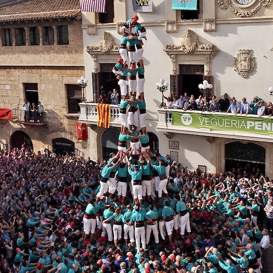 Another major highlight is the creation of human towers, or Castells, a Catalan tradition from the 18th century. Teams called colles form these gravity-defying structures by climbing onto one another’s shoulders, often reaching seven or eight tiers. Each participant has a defined role, from the strong base (la pinya) to the small child who completes the tower with a raised hand. Castells showcase teamwork, courage, and the motto: “Strength, balance, courage, and common sense.”